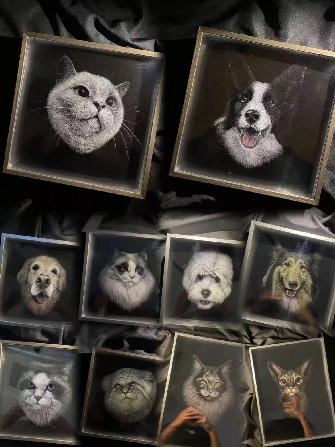 Each layer might not make sense alone, but when perfectly aligned, they bring the artwork to life with astunning 3D effect, making your pet look like they'rejumping out of the portrait!
